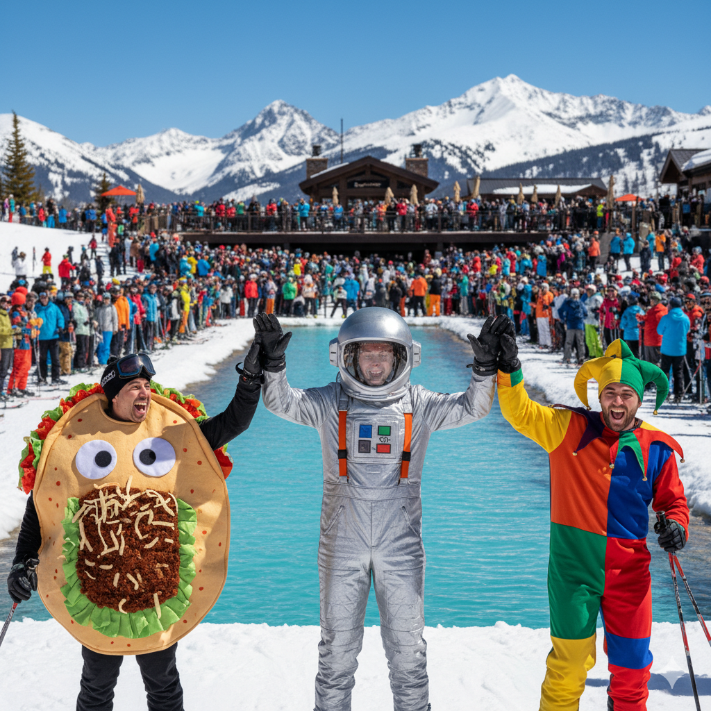 It is the ultimate rite of passage for every spring skier and snowboarder. You’re standing at the top of a slushy run, staring down at a 50-foot pool of ice-cold water. Hundreds of spectators are screaming, a DJ is blasting 90s remixes, and you are dressed as a giant inflatable banana.